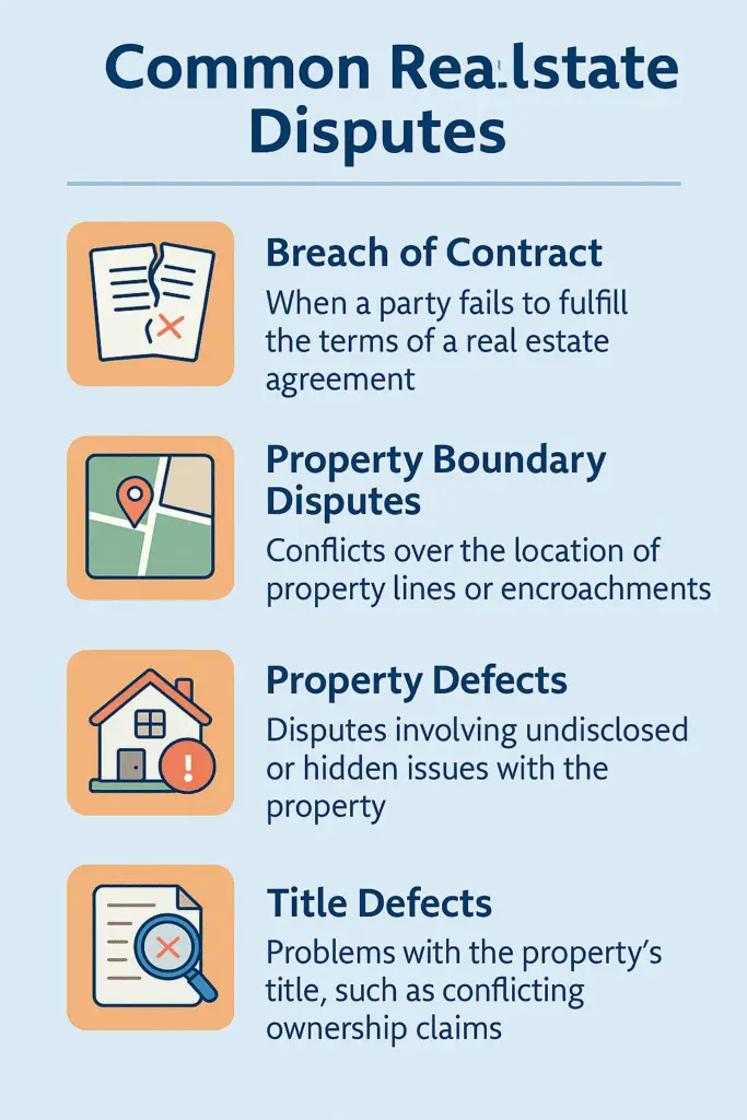 The real estate industry is fast-paced, and disputes are unavoidable. Whether you’re dealing with a breach of contract, boundary disputes, property defects, or title defects, preparation is key.